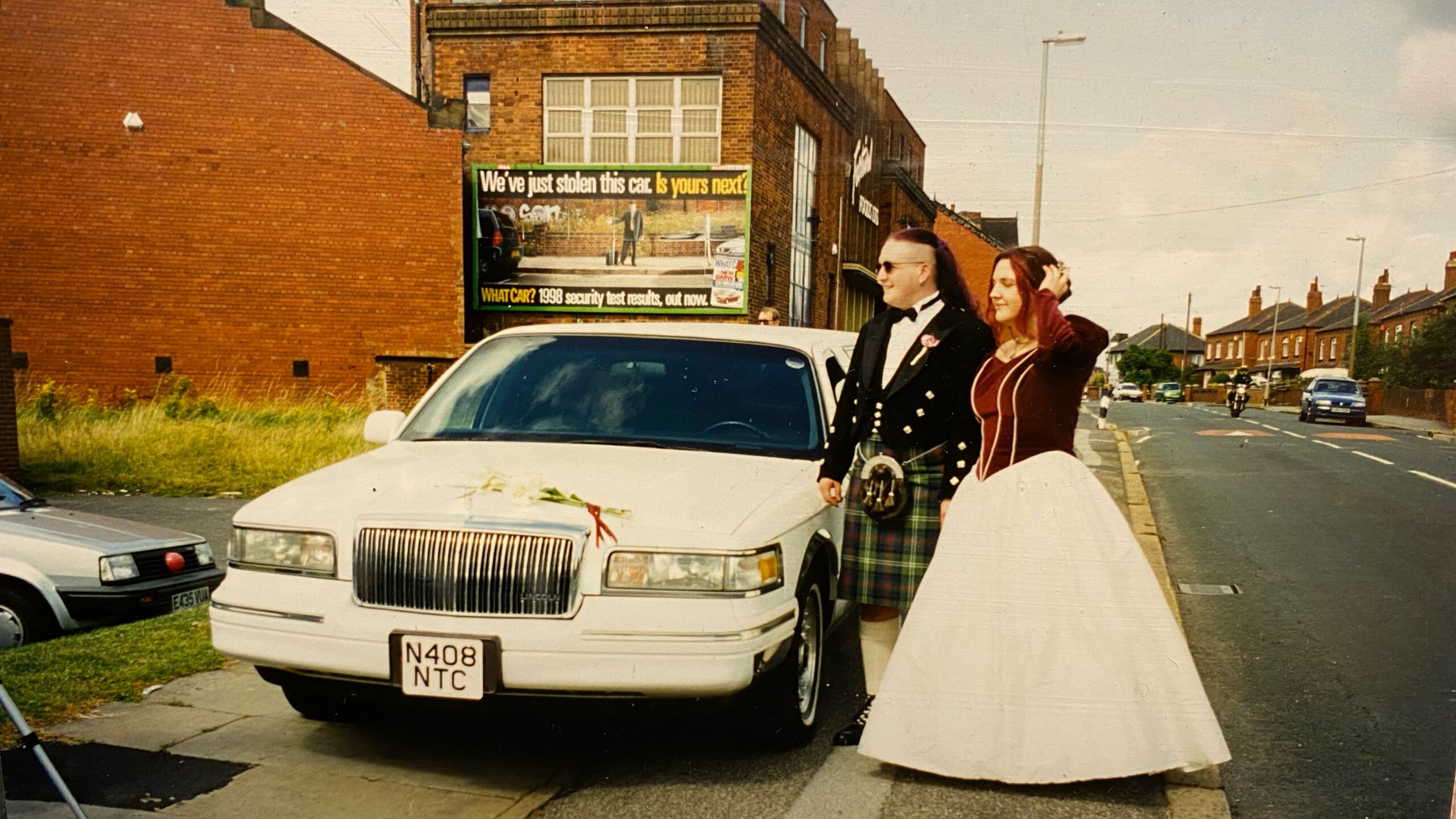 We were photographed next to the wedding car underneath an advertising hoarding that declared “we’ve just stolen this car, is yours next”?